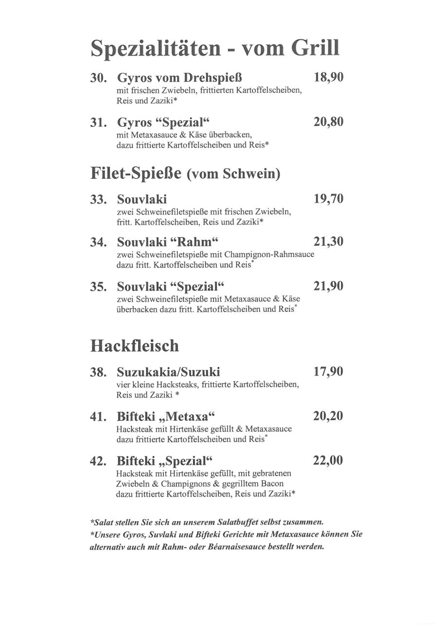 Von Vorspeisen bis zu Desserts: In unserer Speisekarte finden Sie alles, was die griechische Küche zu bieten hat. Ob frisches Gemüse, gebratenes Fleisch oder Fisch: Wir servieren Ihnen alle Gerichte individuell nach Ihrem Geschmack.