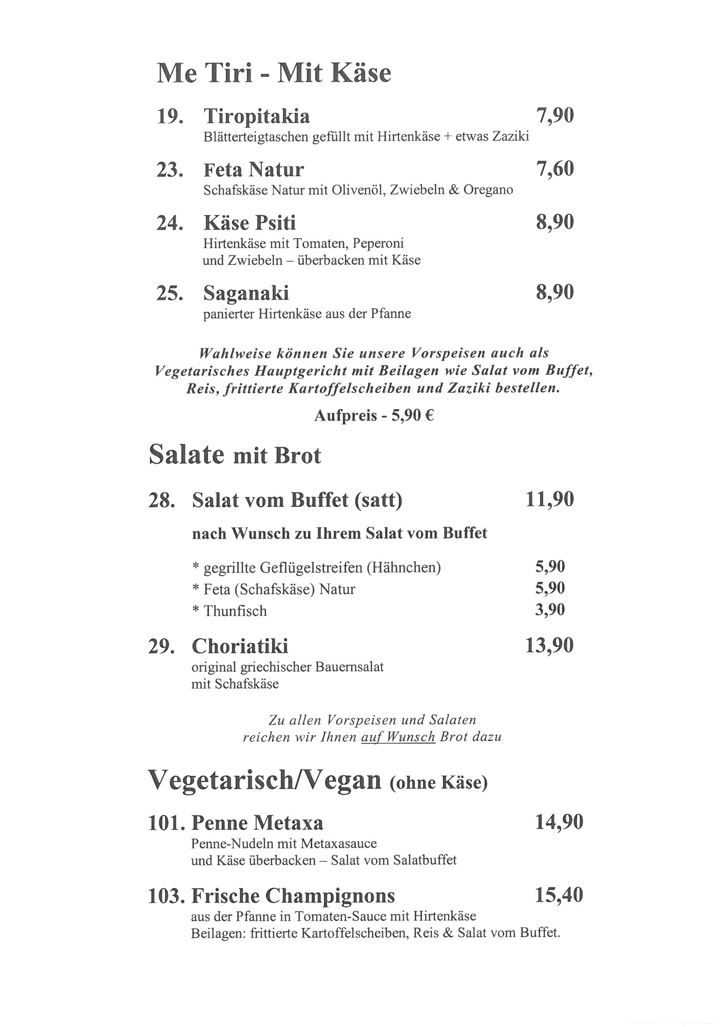 Speisekarte